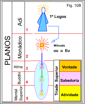 Ali se representa a estrutura de tríplice apoio, ou a Tríade Superior que, no futuro, quando atingir sua maioridade e passar a chamar-se indivíduo, usará amplamente como base psíquica para conduzir sua vida. Por enquanto, embora na figura tenhamos mostrado uma só Mônada, isto feito para facilitar o entendimento, ela é, contudo, apenas mais uma anônima dentro de uma inimaginável coletividade que, sem ainda possuir o poder de escolha, segue conduzida pelas mãos hábeis dos Devas.