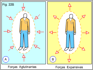 Está em ação o irresistível fluxo ascendente de vida, e sua potencialidade faz inverter a polaridade das forças que atuam sobre o indivíduo. Entra ele na etapa "B", representada na figura. As forças que agora interagem são de tendência expansiva. Partem do indivíduo direcionando-se ao, e buscando o semelhante.