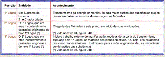 A tabela acima, ao nos trazer algum esclarecimento nos leva, também, de encontro a uma questão expectante. Esta: Quem são, e de onde vieram, os arcangélicos 1º, 2º e 3º Logos, e as Mônadas?