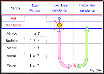 Uma vez os planos devidamente formados, ocorre a impulsão irresistível num fluxo descendente, até atingir o ponto médio central "A", no plano Físico. Essa etapa descendente do arco evolutivo é percorrida de forma inconsciente. Melhor dizendo, sem o poder próprio de escolha.