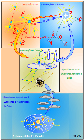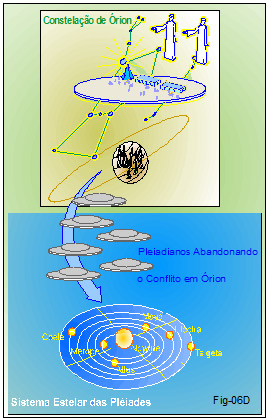 Figura 06B – Vinda do segundo grupo de liranos, a reativação dos conflitos e a fuga do primeiro grupo para o sistema estelar das Plêiades.