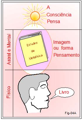 Nas séries Mediunidade, Reconstrução e O Inevitável Despertar comentamos sobre formas pensamento. Na figura 04A representamos essa ocorrência onde, com a emissão de um pensamento qualquer – o livro, por exemplo – a imagem se forma nas dimensões sutis.