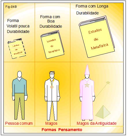 Mas dos estudos anteriores vimos que formas pensamento só possuem consistência e durabilidade na conformidade dos poderes mentais que possua a fonte geradora. Figura 04B.