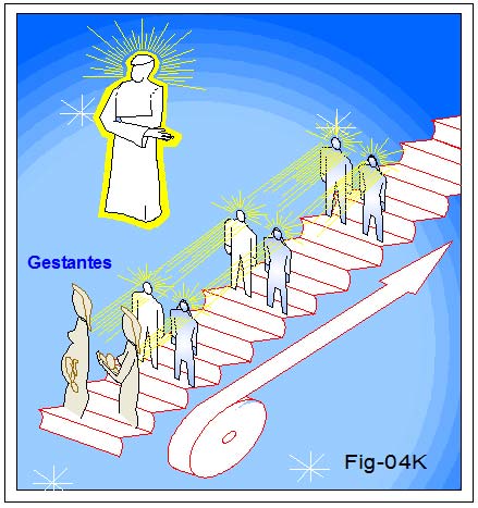 Quando, então, a sucessividade criadora chega até o momento em que nós, os nativos da Terra, fomos criados, e também embarcados nesta mesma e única escada rolante de ascensão eterna. Figura 04J.