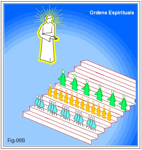 Dessa forma, como dissemos na metáfora, a escada rolante é mesmo infinita e muito ampla na largura de seus degraus. Em cada um deles aloja-se uma Ordem Espiritual formando, destarte, uma fenomenal hierarquia, incompreensível, no seu todo, por nosso acanhado pensar. Figura 06B.