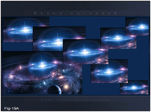 Figuras 19A, 19B, 19I, 19K e 19L têm como fundo a imagem elaborada por Gary Tonge, da Urantia Foundation, sobre a qual acrescentamos nossas composições.