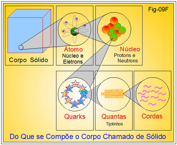 O que vemos na figura 09F é um aglomerado de entidades cada vez mais infinitesimais e que, em seu conjunto e pela intensidade vibratória de cada categoria provocam o fenômeno que damos o nome de solidez.