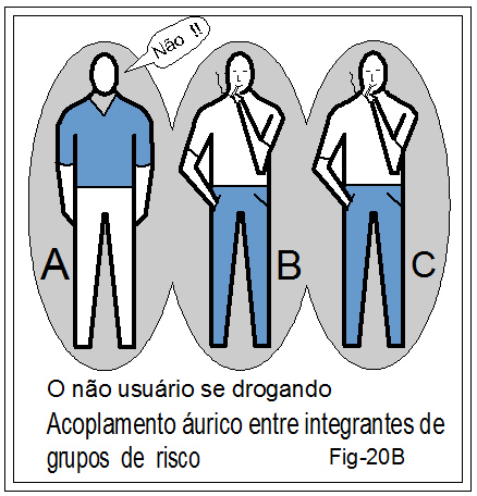 Tomando como exemplo explicativo do que ocorre num acoplamento áurico dentro de um grupo de risco, composto por pessoas que fazem uso de drogas alucinógenas veremos o seguinte: