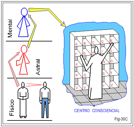 Lá, naquelas profundezas do SER, está, como citamos acima, o “departamento” receptor, identificador e distribuidor. É o Centro Consciencial, que, esquematicamente, representamos nesta figura 30C.