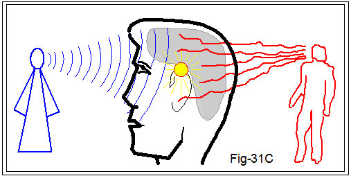 Na figura 31C representamos o médium sendo envolvido por ondas mentais.