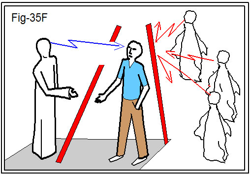1ª - Conforme a figura ao lado ilustra, devido ao desconhecimento sobre a questão mediúnica, o Ser encarnado, de modo geral, tem sua “antena” psíquica, despreocupadamente, lançada na psicosfera que o cerca.  Trocando por outras palavras, seus chacras estão à vontade das circunstâncias.  Essa despreocupação tem alto custo, pois o princípio de sintonia, como vimos nas apostilas 31 e 32, nos demonstra que sintoniza-se apenas aquela “emissora” que corresponde exatamente à igualdade dos sentimentos que se emite.  Sentimentos irresponsáveis ou galhofeiros, sintonizarão “emissoras” de igual magnitude.  (O Livro dos Médiuns, capítulo 17, com ressalvas, e No Invisível, capítulo 5).