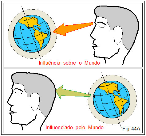 Além disso, por decorrência natural, e direta, sua mente também se agiganta.  Esse agigantamento da mente traz duas conseqüências que, figurativamente, representamos na figura 44A, na folha 2.