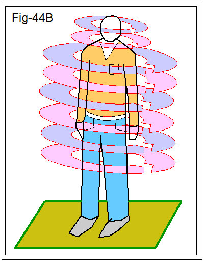 Confunde-se nesse turbilhão incógnito, ainda, para ele.  Sente-se como a figura 44B ilustra.  Um rodamoinho pivotante em sua pessoa.