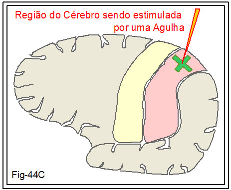 Vejamos um exemplo pela figura 44C em que uma agulha toca o ponto “X” no cérebro em questão.