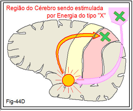 Neste nosso exemplo a energia captada está relacionada com a região “X” do cérebro, e é para lá que a epífise despacha o sinal traduzido.  Em conseqüência a pessoa vai acusar uma reação na perna, que poderá ser uma simples coceira, uma dor mais forte, ou até paralisia.