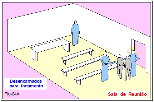 Os desencarnados que neste momento são introduzidos no salão, além dos vigilantes e mentores, são aqueles que irão passar por processos de atendimento assistencial.