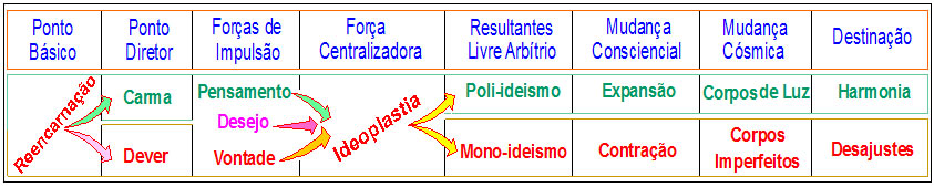 Assim sendo, a partir da coluna “Resultantes – Livre Arbítrio” formam-se duas vertentes que definem a vida de todos os indivíduos.