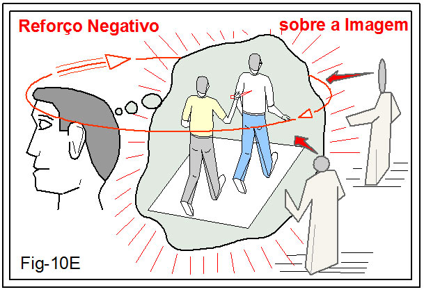 Nesta figura 10E vemos que a imagem-pensamento atraiu dois habitantes do Astral que, simpatizando com a idéia, reforçam-na com seus fluidos, também, espúrios.