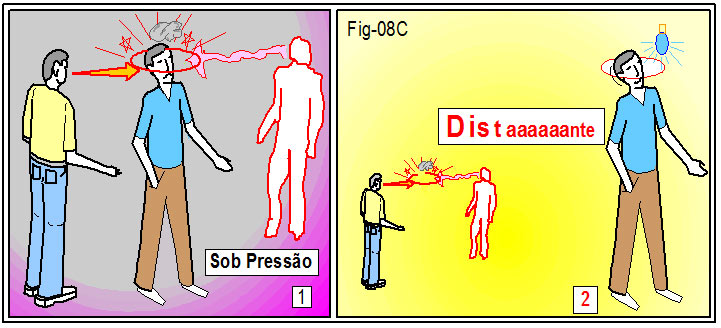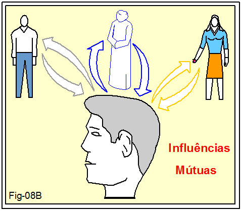 A figura 08B mostra que a todo instante a mente está ati-va, como todos sabem.  Em al-guma coisa pen-sando.  Ideo-plastizando ima-gens.  Até mesmo numa conversa entre amigos, onde um procura convencer o outro a respeito de algum assunto, ali está ocorrendo o fenômeno da ideoplastia.