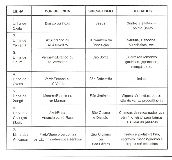 - Para os que acham que sete linhas de Umbanda são sete santos católicos, dizemos sete santos se manifestam em sete vibrações,